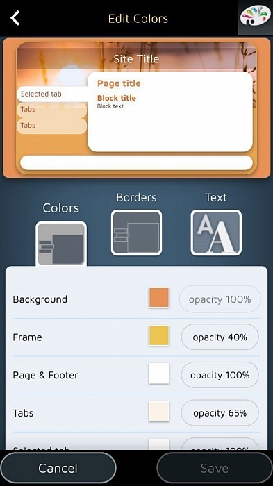 Уебсайтът на SimDif Pro ви помага да дефинирате свои собствени цветове. Играйте с прозрачността на различните елементи. Определете ъглите на вашите раздели и страници. Изберете шрифт за всеки тип заглавия и за основния ви текст... Можете да създадете свой собствен уникален графичен шаблон с Pro версията!